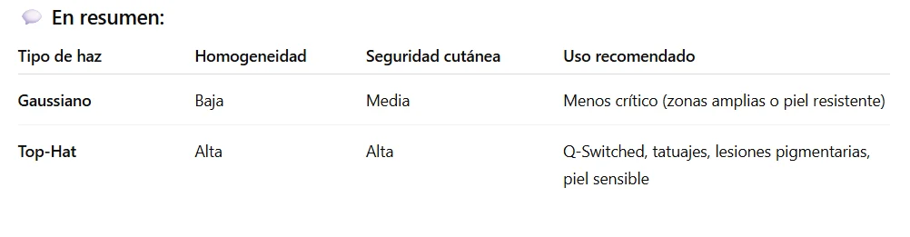 🔍 “¿Sabías que el perfil del haz influye en la eficacia del láser Q-Switched? Descubre la diferencia entre Top-Hat y Gaussiano”
